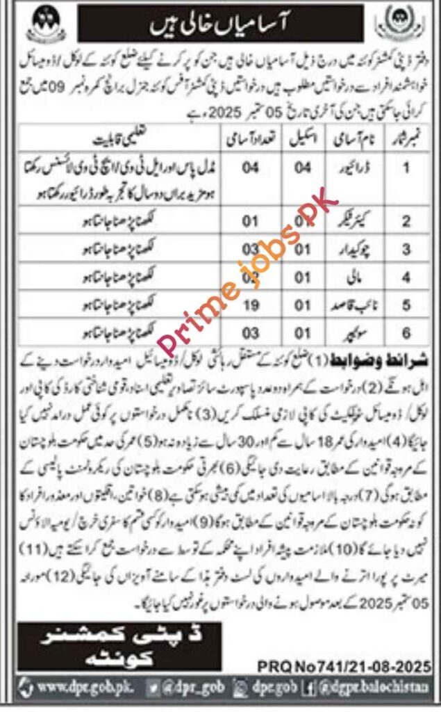 The Office of the Deputy Commissioner Jobs 2025 advertisement has recently been published in the Daily Jang newspaper.Several job openings have been announced by the Office of the Deputy Commissioner Quetta, offering opportunities for qualified candidates to apply for different posts under the district administration. Applications are invited from interested male and female candidates holding a local domicile of District Quetta. All recruitments will be made in accordance with the Recruitment Policy of the Government of Balochistan.