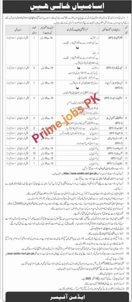 - Candidates can submit their applications through the online application form available on the website https://www.amdte.rect.gov.pk within the specified deadline.