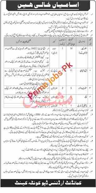 - Applicants applying for posts with Basic Pay Scale (BPS) 05 and above are required to attach a non-refundable postal order of Rs. 300/- in favor of the Commandant, Ordnance Depot Quetta Cantt along with their application.