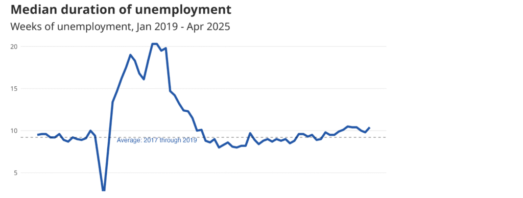 • Labor Force Dynamics: Participation rates hover around 62.5%, with more people entering the job search but facing longer waits for opportunities